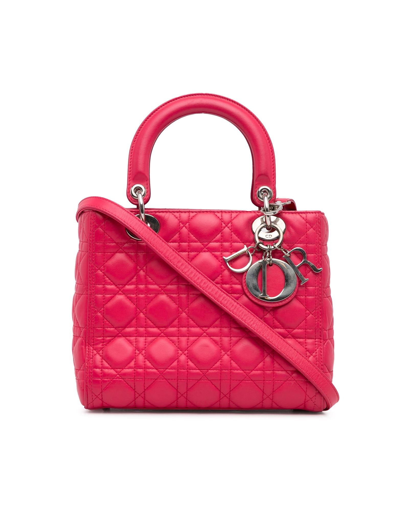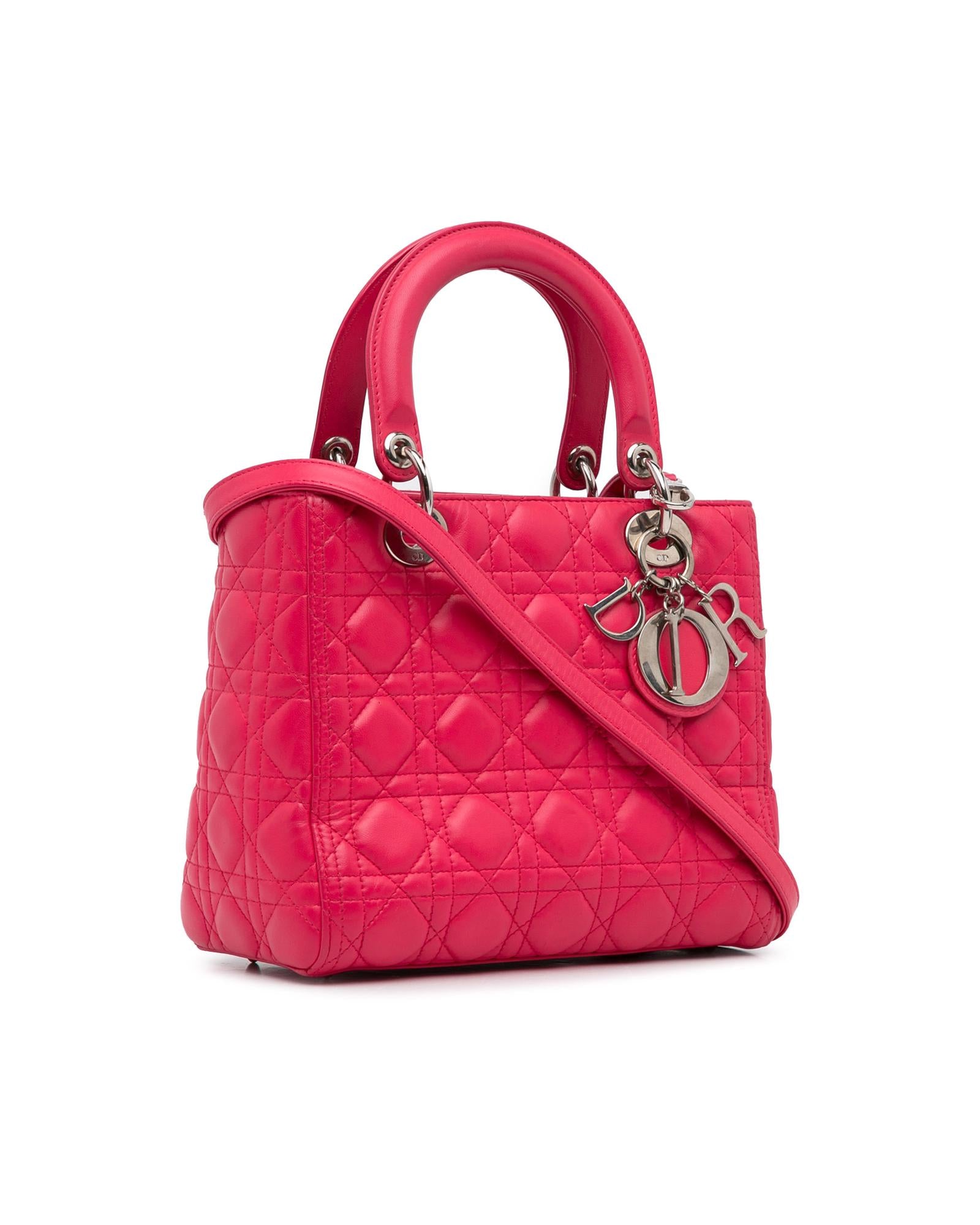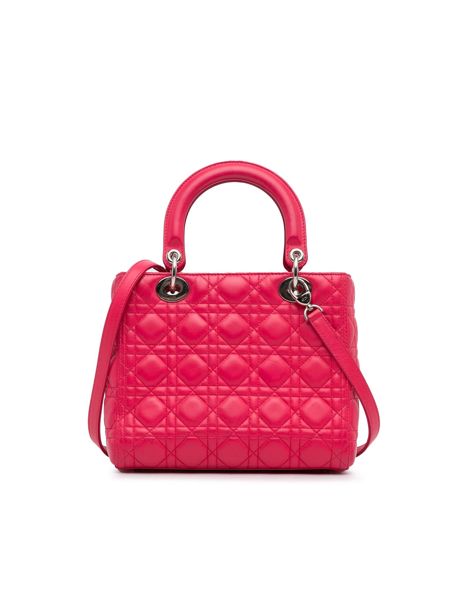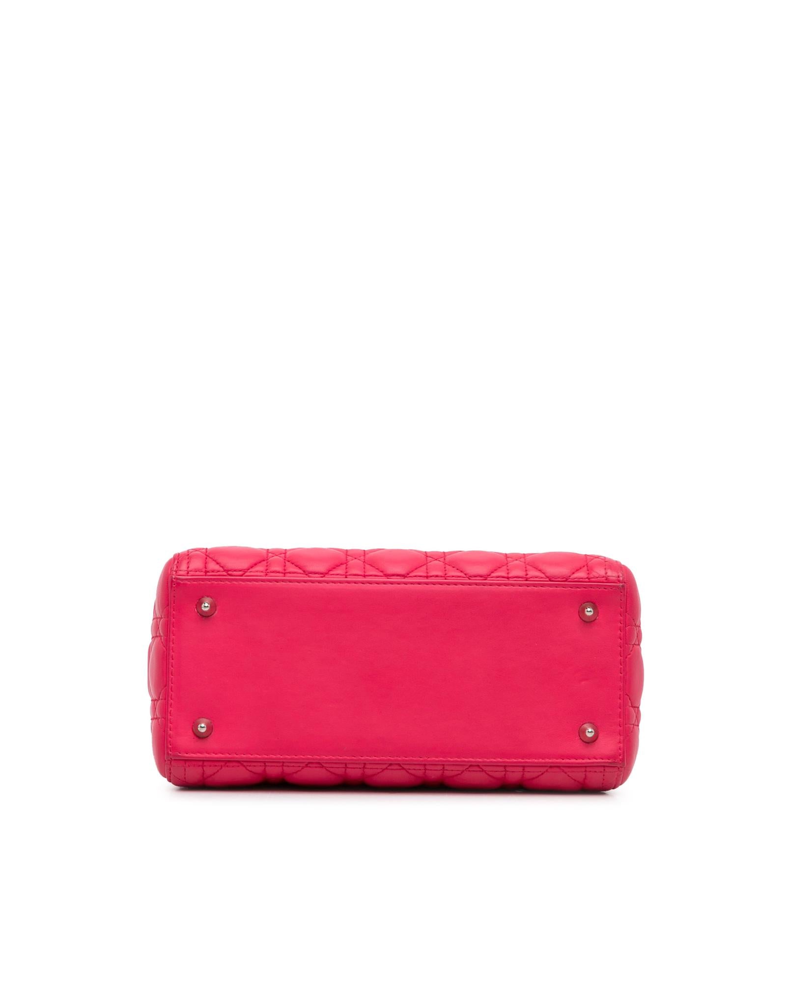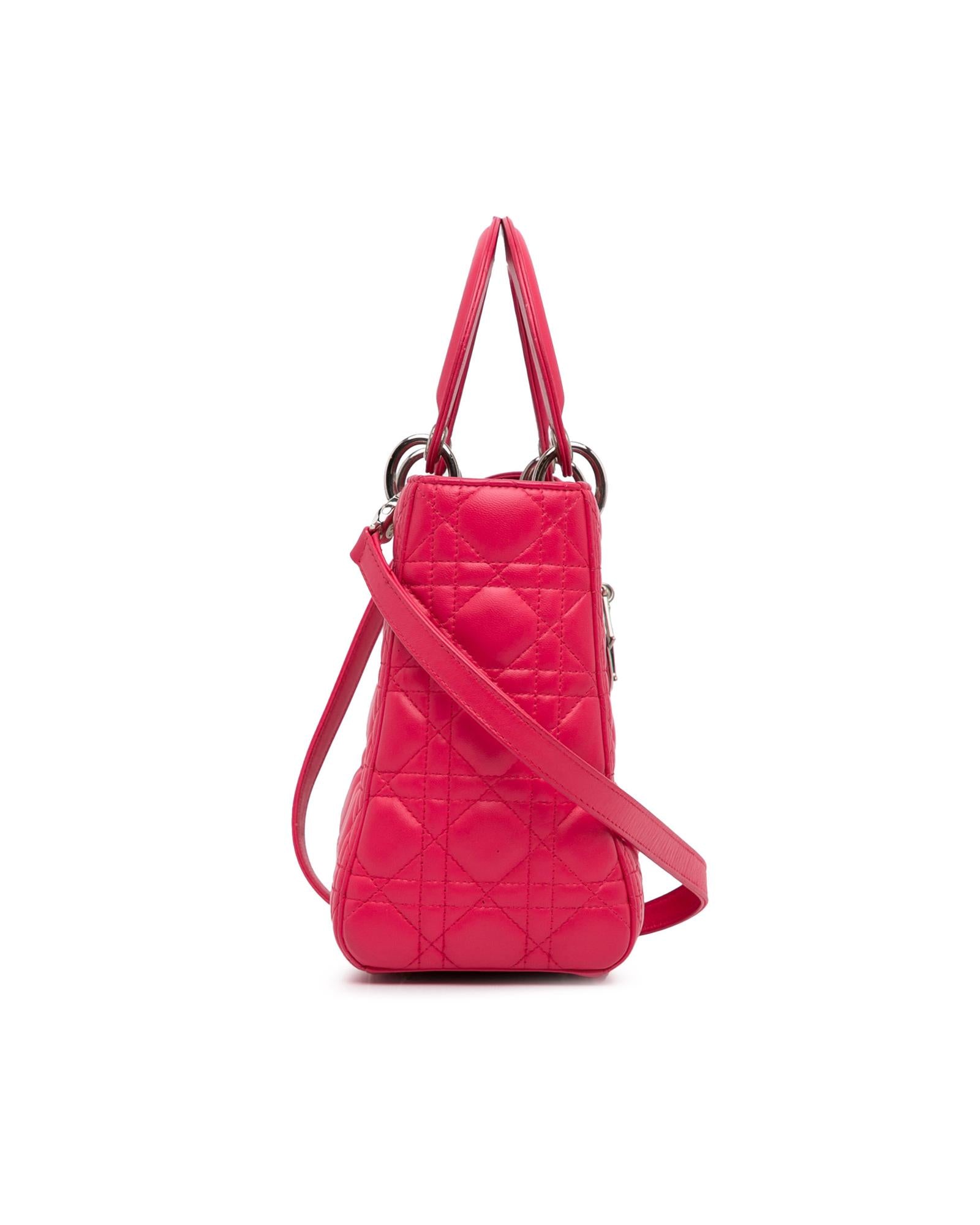 Dior Lady Dior Quilted Lambskin Leather Handbag Pink
